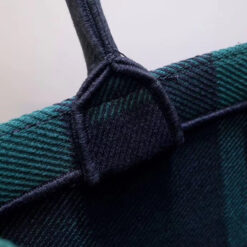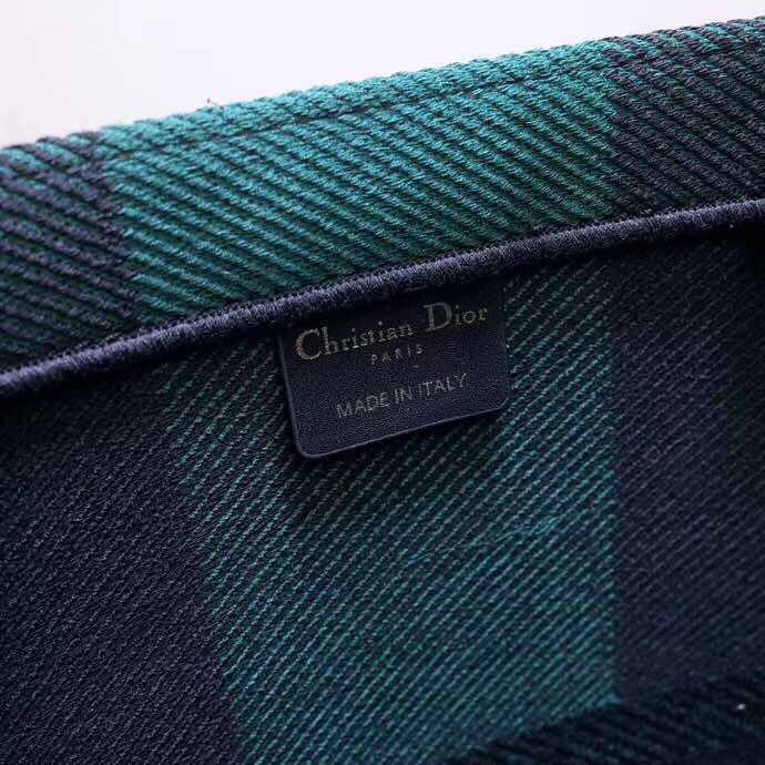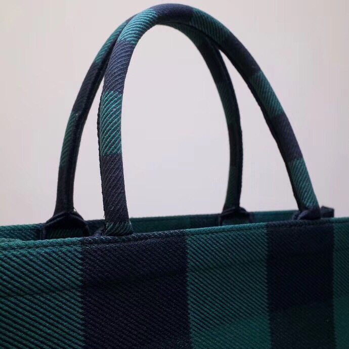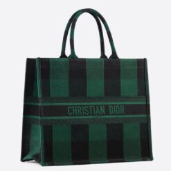 Dior Book Tote Bag In Green/Black Check Embroidered Canvas