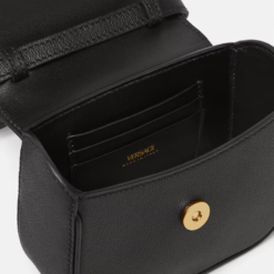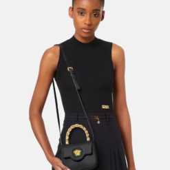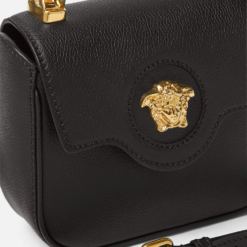 The La Medusa mini bag has been crafted in Italy from grained leather. The central Medusa is instantly recognizable, and the fixed-chain top handle adds an alternate carry option along with the detachable and adjustable shoulder strap.