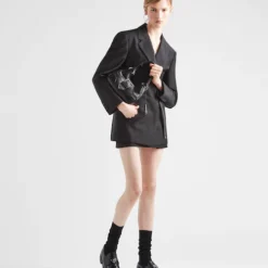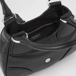 Reimagining the iconic lines of a model from the Prada archives from the 2000s, this nappa leather bag combines traditional elements reinterpreting them in a new way, with an innovative soft design. Softness and simplicity of the silhouette define this hobo bag, embellished by the ton-sur-ton triangle logo that frames the lettering logo, creating a three-dimensional and material game and enriching the design of the accessory.