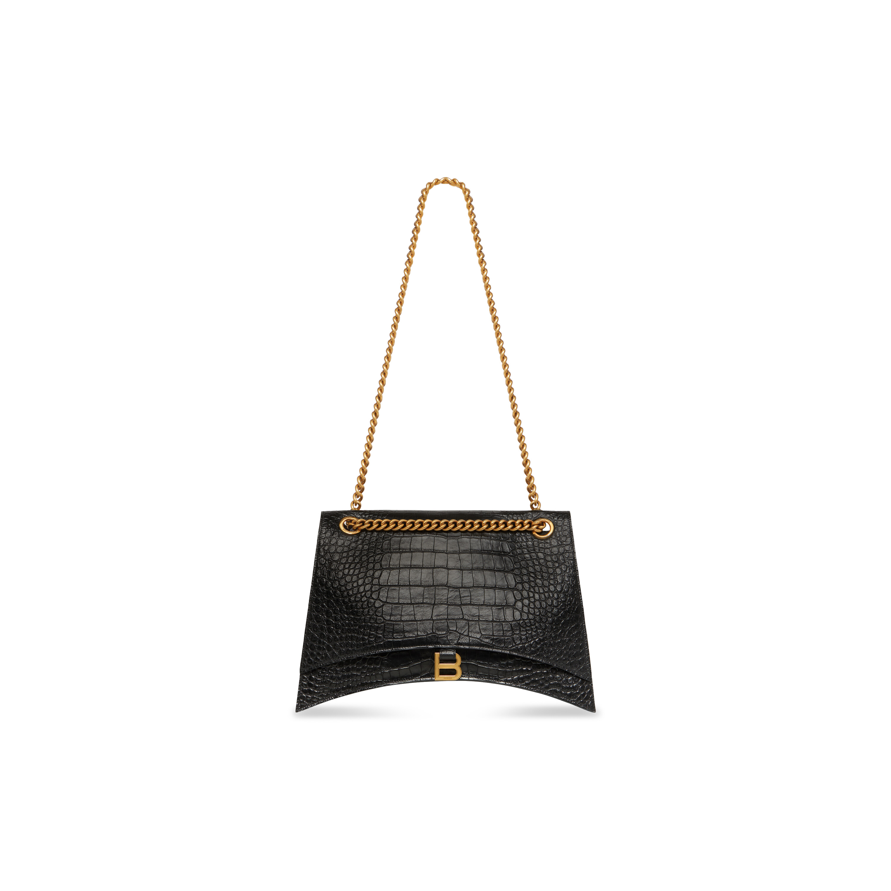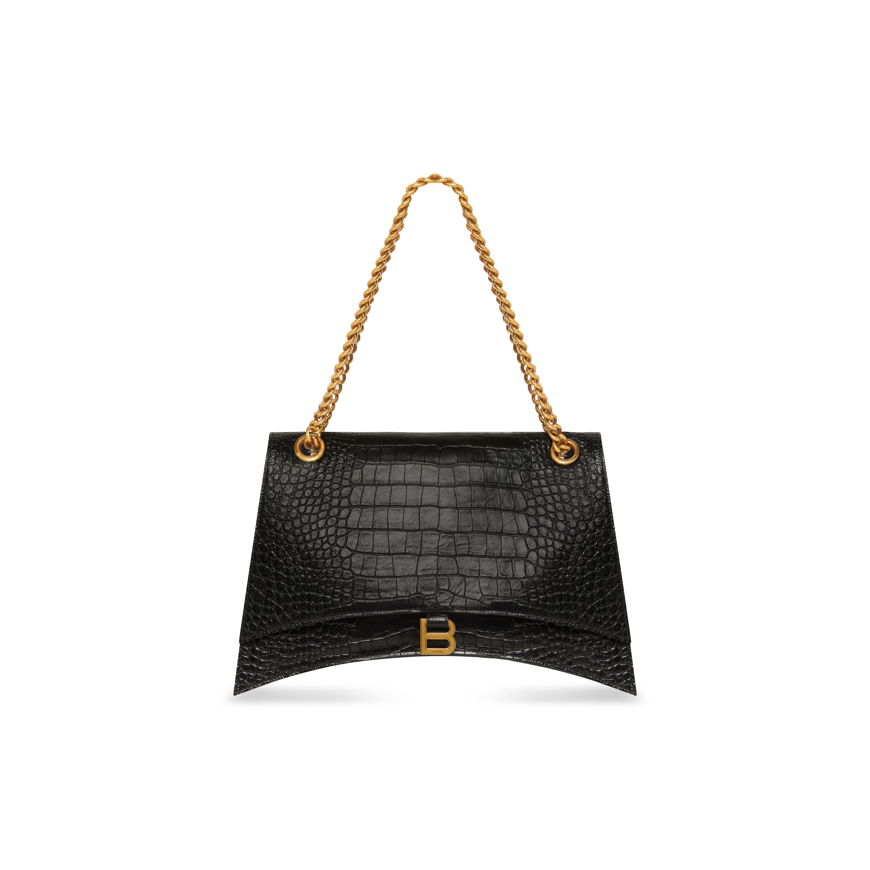 WOMEN’S CRUSH LARGE CHAIN BAG CROCODILE EMBOSSED IN BLACK