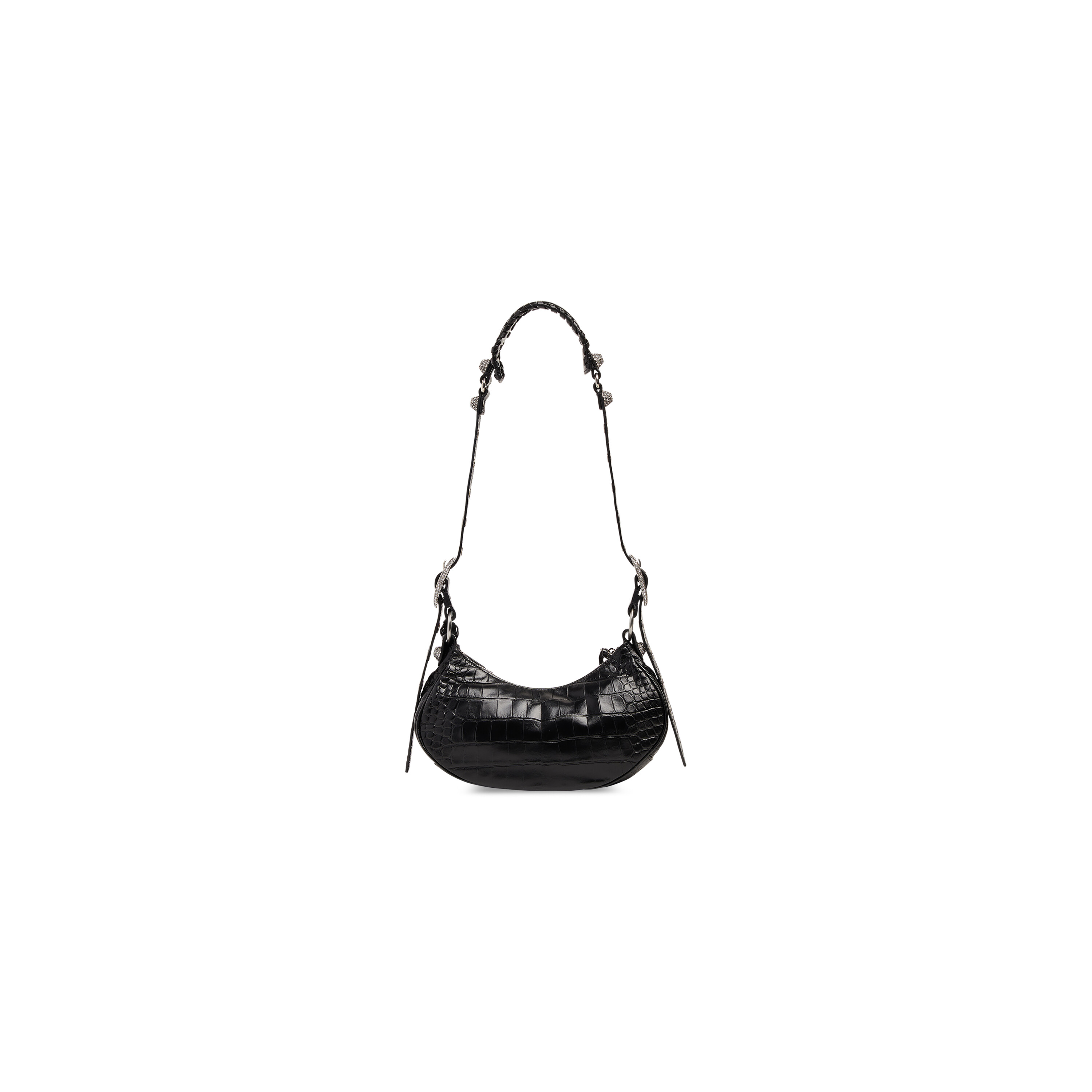 WOMEN’S LE CAGOLE XS SHOULDER BAG CROCODILE EMBOSSED WITH RHINESTONES IN BLACK