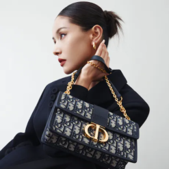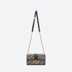 The East-West bag with chain enhances the 30 Montaigne line with a timeless and elegant design. The handbag is crafted in blue jacquard and highlights the House’s hallmark Dior Oblique motif. The flap has an antique gold-finish metal CD clasp, inspired by the seal of a Christian Dior perfume bottle. Other details, like the embossed 30 Montaigne signature on the back, highlight the streamlined design. The bag features a removable chain strap with a leather insert that allows it to be comfortably carried by hand, worn over the shoulder or crossbody.