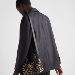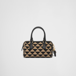 Prada Symbole embroidered fabric top-handle bag – Black/Beige