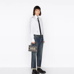 MINI DIOR BOOK TOTE Blue Dior Oblique Embroidery (22.5 x 15 x 6 cm)
