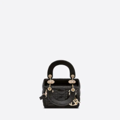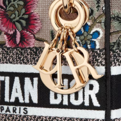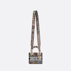 The Lady D-Lite bag combines classic elegance with House modernity. The style is fully embroidered with the pink multicolor Dior Petites Fleurs motif, a romantic and vibrant homage to Mr. Dior’s passion for florals. A Christian Dior Paris signature adorns the front, while D.I.O.R. charms in pale gold-finish metal further enhance and highlight the silhouette. Featuring a wide embroidered shoulder strap, the miniature Lady D-Lite bag can be carried by hand, worn over the shoulder or crossbody.