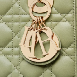The Lady Dior My ABCDior bag epitomizes the House’s vision of elegance and beauty. Sleek and refined, the timeless style is crafted in Ethereal green lambskin with Cannage stitching, creating the instantly recognizable quilted texture, while the pale gold-finish metal D.I.O.R. charms embellish and illuminate the silhouette. Featuring a shoulder strap that can be customized by adding badges, the small, unique style may be carried by hand or worn crossbody.