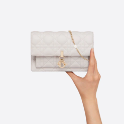 The Lady Dior pouch is a compact yet spacious companion. Crafted in latte lambskin with Cannage stitching, it is embellished with a ‘D.I.O.R.’ charm for a chic and timeless allure. Thanks to its numerous compartments, the functional accessory can accommodate all the daily essentials. Its jewel chain allows it to be worn over the shoulder or crossbody.