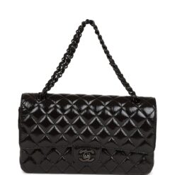 Chanel Medium Classic Double Flap Bag SO Black Crumpled Calfskin Black Hardware