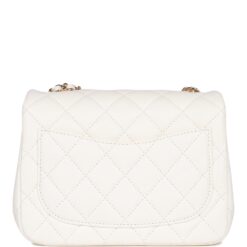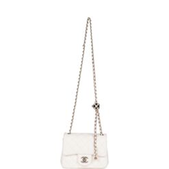 Chanel Pearl Crush Mini Square Flap Bag White Lambskin Light Gold Hardware