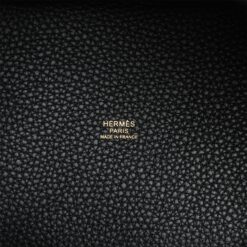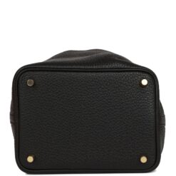 This Picotin Lock is in Black clemence leather with gold hardware and has tonal stitching with two top handles.