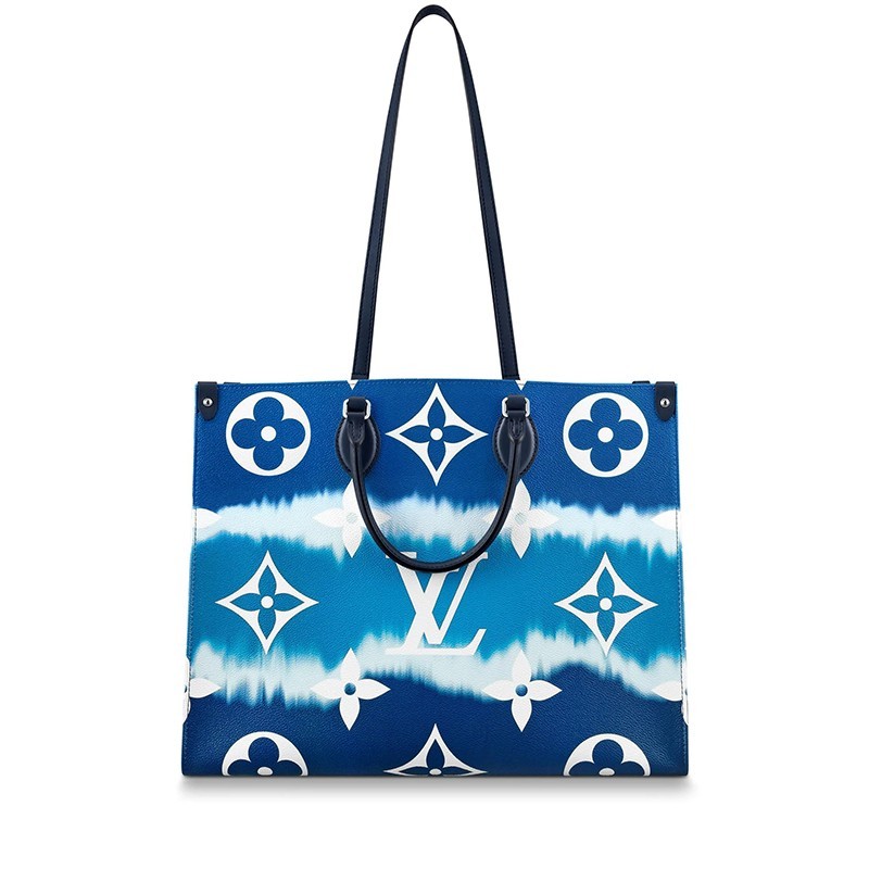 Fashioned from Monogram Giant canvas, the Onthego tote bag is as striking as it is practical. Onthego large Tote bag follows the traditional Japanese dyeing process, knotting, folding and dyeing the fabric, showing the fresh beach interest of the LV Escale series in the summer of 2020. With its generous capacity, shoulder straps and iconic Toron top handles, this versatile GM model is an ideal bag for everyday wear.