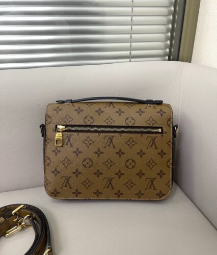 With its distinctive satchel silhouette, the Pochette Métis bag has become an object of fashion desire. This compact, go-everywhere model in trendy Monogram Reverse canvas features a signature S-lock closure with a gleaming gold-tone finish. Versatile and surprisingly roomy, it is fitted with a chic top handle and a long removable strap for shoulder or crossbody wear.