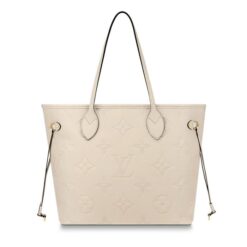 The essential Neverfull MM tote now comes in embossed Monogram Empreinte leather. Its generous dimensions make this bag ideal for everyday use while the long shoulder handles and supple leather mean it’s comfortable to carry. With the side laces cinched, this roomy carryall becomes a stylish city bag. It can be worn over the shoulder or on the elbow.