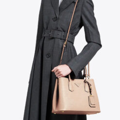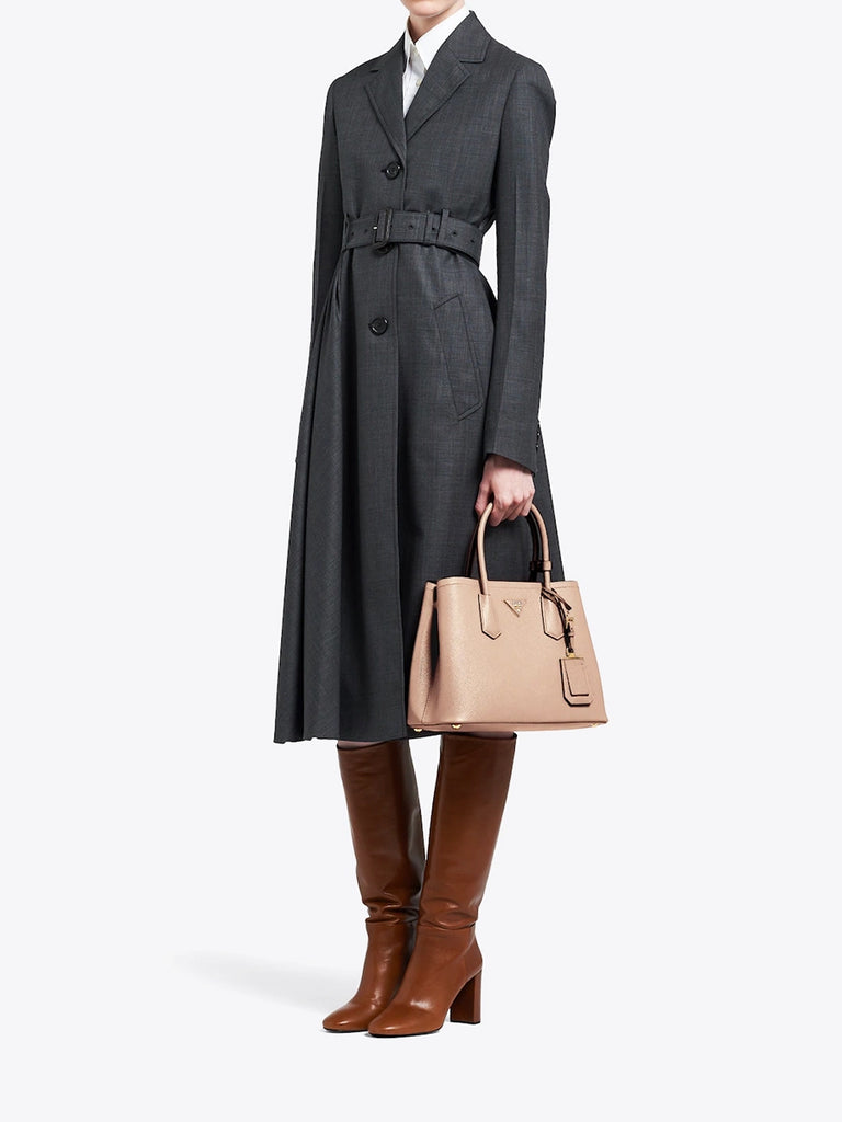 Prada Small Saffiano Leather Double Prada Bag in Powder Pink