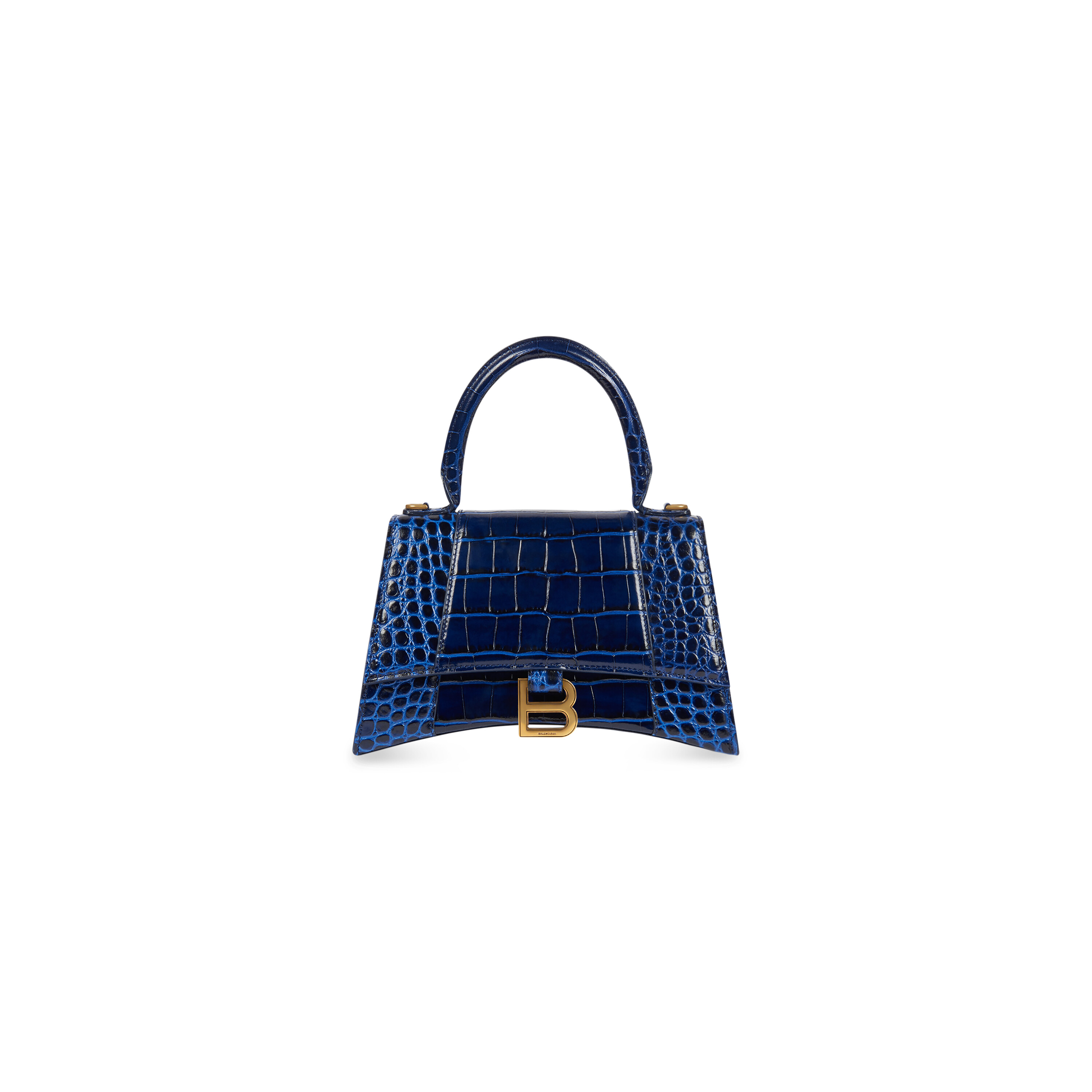WOMEN’S HOURGLASS SMALL HANDBAG CROCODILE EMBOSSED IN NAVY