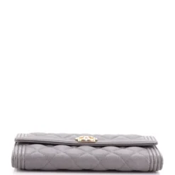 Chanel Boy Flap Wallet Quilted Leather Long