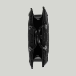 Signature luggage pieces from the jumbo GG line spotlight an all-black design for Spring Summer 2023. A reinterpretation of Guccio Gucci’s initials, the GG features prominently in maxi size for a distinctive logo feel atop this tote bag with additional shoulder strap.