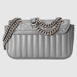 The Gucci Aria collection is an exploration of the House’s most emblematic codes and symbols. The GG Marmont is synonymous with its matelassé leather and monogram hardware. Here, the mini shoulder bag is reimagined with a new geometric take on its signature finish that combines vertical and diagonal motifs.