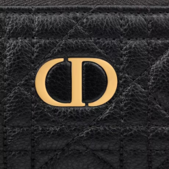 DIOR CARO ZIPPED KEY CASE Black Supple Cannage Calfskin