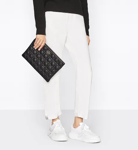 LARGE DIOR CARO DAILY POUCH Black Supple Cannage Calfskin