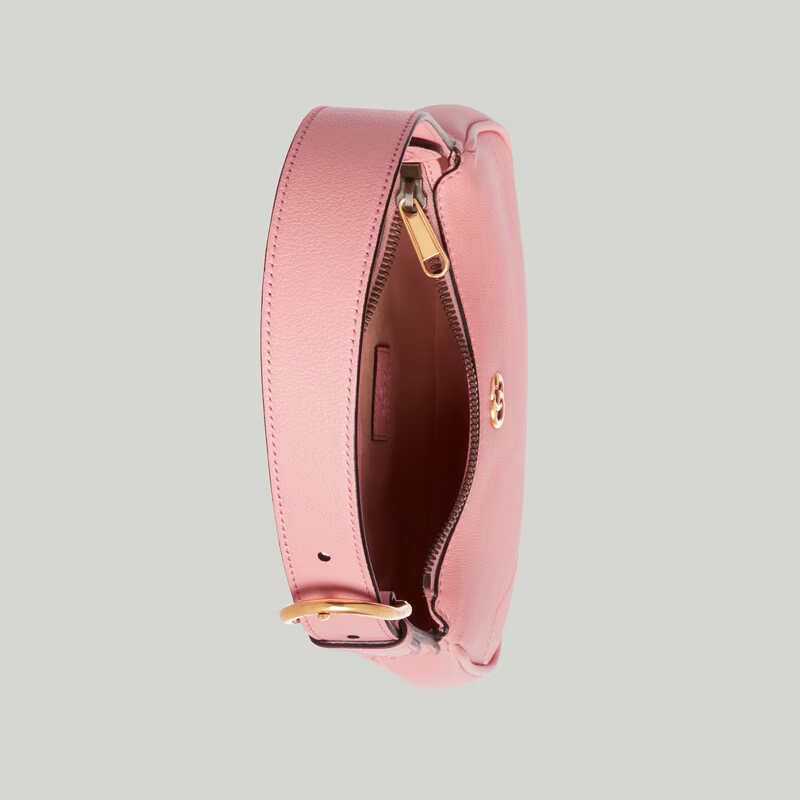 A nod to styles popular during the late 1990s and early 2000s, the Aphrodite line welcomes a new shape with this small shoulder bag, which pairs the essential design with pop colours and the unmistakable Double G hardware, for a sleek yet unexpected look. Here, it’s presented in a soft light pink leather with a gold-toned zip closure.