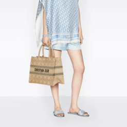 Introduced by Maria Grazia Chiuri, Creative Director of Christian Dior, the Dior Book Tote has become a staple of the Dior aesthetic. Designed to hold all the daily essentials, the style is crafted in natural raffia Cannage and is enhanced by the ‘CHRISTIAN DIOR PARIS’ signature on the front. The medium tote exemplifies the House’s signature savoir-faire and may be carried by hand or worn over the shoulder.