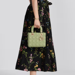 The Lady Dior My ABCDior bag epitomizes the House’s vision of elegance and beauty. Sleek and refined, the timeless style is crafted in Ethereal green lambskin with Cannage stitching, creating the instantly recognizable quilted texture, while the pale gold-finish metal D.I.O.R. charms embellish and illuminate the silhouette. Featuring a shoulder strap that can be customized by adding badges, the small, unique style may be carried by hand or worn crossbody.