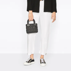 The Lady Dior handbag epitomizes the House’s vision of elegance and beauty. Sleek and refined, the timeless yet relevant style is crafted in black ultramatte calfskin with Cannage stitching, creating the instantly recognizable quilted texture. The tonal metal ‘D.I.O.R.’ charms further embellish and illuminate its silhouette. Featuring a removable chain shoulder strap, the miniature Lady Dior bag can be carried by hand, worn over the shoulder or crossbody as an ideal evening companion.