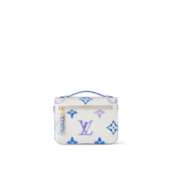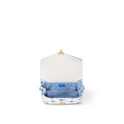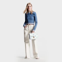 The Pochette Metis handbag is made from cream-color canvas with pastel LV’s and Monogram Flowers printed with a delicate watercolor effect. The top handle and removable strap feature a denser pattern of the Monogram Flowers, reminiscent of the painted ceramic tilework found in Lisbon.