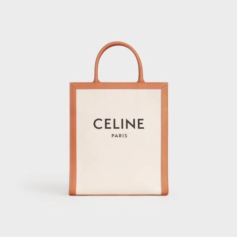 SMALL VERTICAL CABAS CELINE IN CANVAS WITH CELINE PRINT AND CALFSKIN NATURAL / TAN