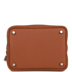 This Picotin Lock is in Gold clemence leather with palladium hardware and has contrast stitching with two top handles with Craie undersides.