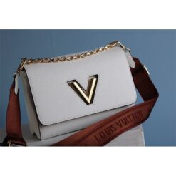 The Twist Strap MM is a laid-back iteration of the New Classic bag. It features both a Epi grained leather top handle and a wide, sporty-chic embroidered satin strap. Designed for a short cross-body carry, the strap is embroidered with ‘Louis Vuitton’. A standout style for casual or athleisure looks.