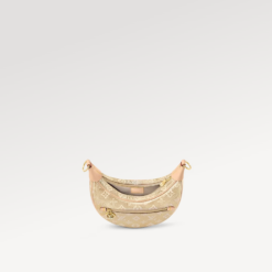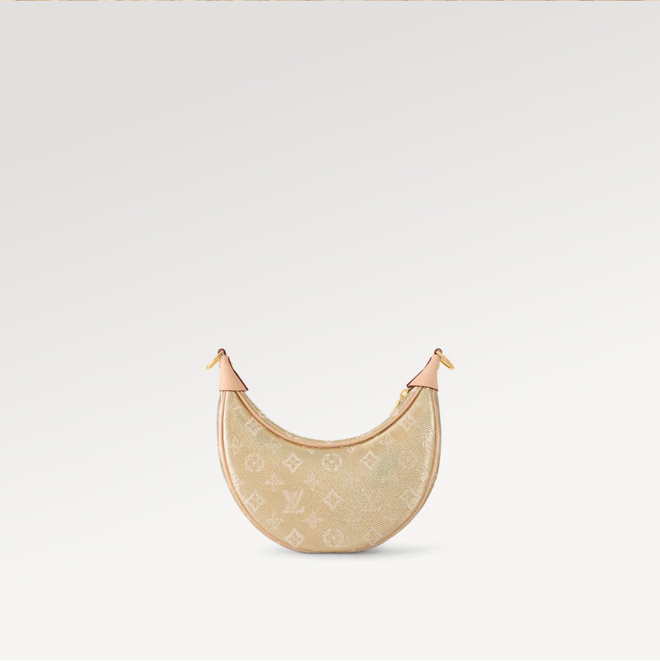 The small, fashionable Loop baguette handbag takes on glamourous allure in Monoglam canvas with gold-color hardware such as the exquisite chain and the LV Circle zip pull on the front pocket. The Monogram jacquard canvas is specially coated to create a soft metallic hue that takes on an iridescent aspect in the light.