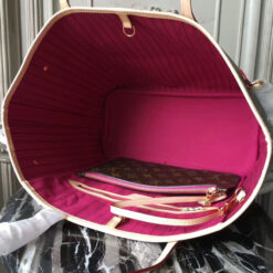 Louis Vuitton celebrates the Neverfull with a new version of this iconic bag. Look inside to discover a host of refinements. The redesigned interior features a fresh textile lining and heritage details inspired by House archives. Best of all, the removable zippered clutch can be carried separately as a chic pochette or serve as an extra pocket. Linings in a selection of bright shades lend a pop of vivid color to the timeless Monogram canvas.