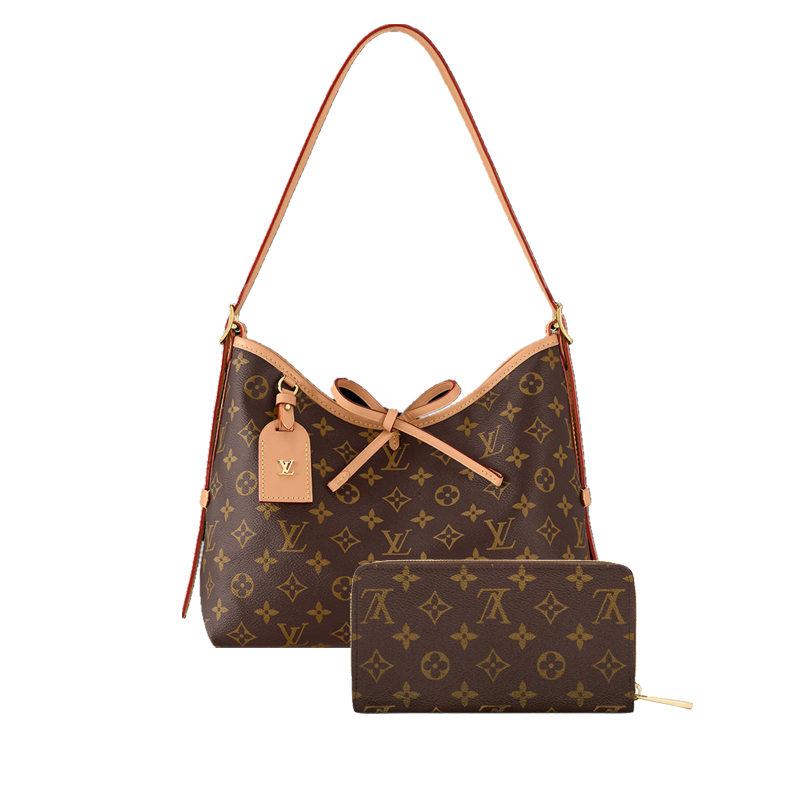- Combining allure with body-friendly design, the CarryAll PM bag in Monogram canvas with a natural leather trim is a go-everywhere city bag. Great storage capacity and a smartly designed interior with two large inside pockets make it practical. A detachable zipped pouch, also in Monogram canvas, is attached to the bag by a leather strap.