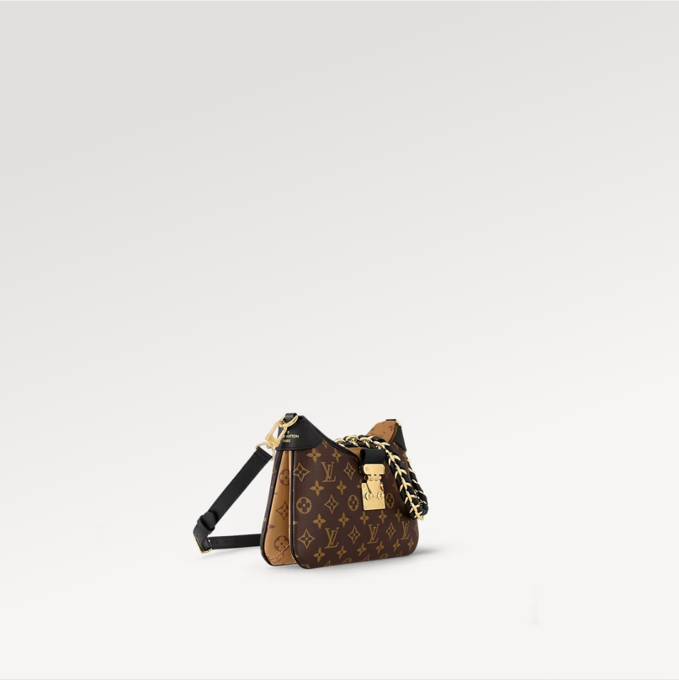 Inspired by the Maison’s archives, the casual yet sophisticated LV Twinny is the Monogram handbag of the season. Crafted from a mix of Monogram and Monogram Reverse canvas with black leather trim, it is detailed with an iconic S-lock and a braided chain handle. The bag lends itself to all manner of stylings: from elbow and shoulder to short or long cross-body wear.